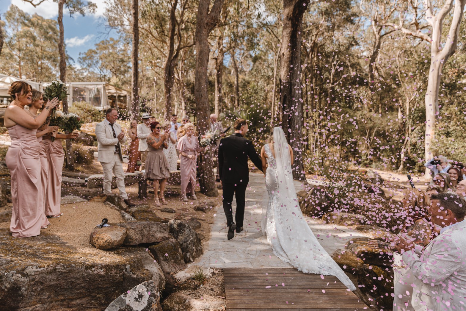 The ultimate Autumn backyard wedding in Mittagong, complete with a first look, confetti, and awesome boho vibes.